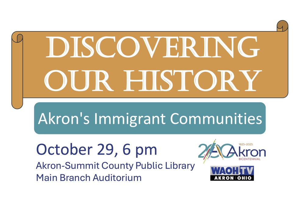 Join us for a new series, “Discovering Our History”, as we celebrate Akron’s Bicentennial. This forum will feature the history of Akron’s Immigrant Communities, with a moderated panel discussion.